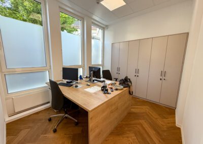 Der Ausbau umfasste die komplette Planung, Renovierung und Möblierung – bis hin zur schlüsselfertigen Übergabe. Innerhalb kürzester Zeit entstand so eine Praxis, die Funktionalität und Ästhetik ideal verbindet.